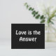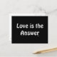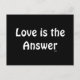 This postcard has the white expression: “Love is the Answer” on a black background. This postcard is a great mailing item to greet your loved ones as well as a nice present to someone special. You can also match it with cards, envelops, stickers, and stamps.
