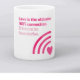This white mug features the text "Love is the ultimate WiFi connection: it knows no boundaries" in a pink font. Below the text, there is a graphic of a WiFi signal icon with a heart shape at the bottom right of the signal lines. The design cleverly uses a modern metaphor to describe love, comparing it to a WiFi connection that transcends boundaries. It's a perfect gift for anyone who loves technology and romance.