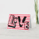 Tell that special someone that Love is the word with this graphic Love greeting card with a red heart pattern background. The inside reads: " …is the word. Be my valentine".