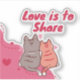 A sweet illustration of two adorable cats sitting together with the message “Love Is to Share.” Perfect for cat lovers and anyone who enjoys warm, affectionate designs with a cozy vibe.