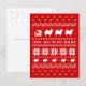 Love Joy Peace Eskies Christmas Postcard. Funny Christmas sweater style pattern with a squirrel ride a sleigh pulled by American Eskimo Dogs. A cute Christmas postcard for everyone on your list, perfect for both business and personal holiday mailings. Visit Jenn's Doodle World for even more dog lover's holiday cards and gifts featuring this humourous Eskies Xmas pattern.