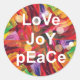 Love Joy Peace Sticker Round - Perfect to adhere your phone or tablet, orr bundle your party ribbons and tags together!