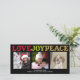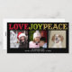 Share your favourite family photos in this chic Christmas greeting card. The colourful greeting "Love Joy Peace" is set in unexpected woodblock typeface. This design accommodates 3 photos with your custom text at the bottom.