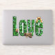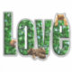 Pictured Is A Big Green Glassy Love Word With Three Fluffy Kittens.