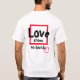 Black and red "Love knows no bounds" T-shirt boldly features the word Love in bold black text that extends outside the box of red. On the back, "Love Knows No Bounds" escapes the confines of the red edges of a box along with a red heart. In any available style for men, women, children, babies or infants, this is a bold declaration of unconditional love.
