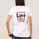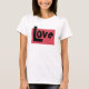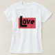 Black and red "Love knows no bounds" T-shirt boldly features the word Love in bold black text that extends outside the box of red. On the back, "Love Knows No Bounds" escapes the confines of the red edges of a box along with a red heart. In any available style for men, women, children, babies or infants, this is a bold declaration of unconditional love.