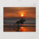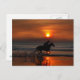 Postcard of a lone rider and horse galloping on the shore of Ballybunion beach in county Kerry Ireland on a summer evening.