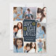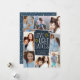 Fun and festive Hanukkah photo card features eight photos arranged in a collage layout. "Love, light, latkes" appears in the centre in white lettering on a dark blue background accented with stars. Personalise with your names and the year.