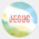 Sticker depicts a modern abstract watercolor background with shades of blue and green. It features a powerful inspirational Christian quote, "Love Like Jesus."