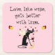 Love, like wine, gets better with time. The Cabernet Cat is giddy with love. He's even got wings, like Cupid, sort of. And a bow and arrow that he hasn't quite gotten the hang of yet. But he's still holding a glass of his favourite red wine. Because lovers who've been in love a long time (you know, a month at least) feel their love bloom and grow. That's how the saying goes, anyway. Here's a set of paper coasters with Himself and this timely wine saying for Valentine's Day. Great for a Valentine's Day gathering. But hey, who needs an excuse to gathering in the name of love for any reason?