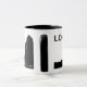 We love London, and to show it, we enjoy our coffee from this stylish designer coffee mug resplendent with silhoetted buildings from the London skyline and the name London with a heart replacing the second 'O'.