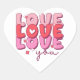 Love Love Love You Romantic Heart Typography Heart Stickers features the text "Love Love Love You" in modern pink, red and purple typography script accented with cute candy hearts. Created by Evco Holidays www.zazzle.com/store/evcoholidays