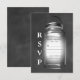 A Rustic Mason Jar on an illustrated chalkboard background decorates this RSVP. It is shown on the basic paper; however, the delicate or laid paper is a beautiful option for a more aged, vintage look. Scroll down to see the complete wedding collection.