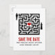 Quirky and fun Love Maze Save the Date Postcard featuring a maze with a heart in the middle and a bride and groom on either side, waiting to find each other and love. This sweet design is a charming choice for announcing your upcoming wedding! Easy to customise, simply fill in the details of your wedding in the text fields provided. Click on the "Customise It" button to find additional personalisation options.