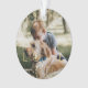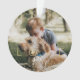 Cherish the wonderful memories forever with our custom pet memorial christmas ornaments. Our design features a beautiful festive and magical design with a large photo placeholder for you to personalise with your own beautiful pet's photo. A beautiful faux gold starry star pattern is placed along the top and bottom of the pet photo. "Love" is displayed in faux gold with a cute little faux gold dog paw print placed within the letter "O". Personalise with your pet's name. Artwork by Moodthology Papery.