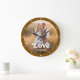 Love | Modern Script with Photo Rustic Brown Large Clock