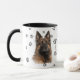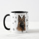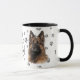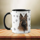 This mug for the Belgian Tervuren Dog owner features a beautiful portrait of a Tervuren. The image is printed twice, and between them is an oval with the black text that says "Love my Belgian Tervuren". The oval and dog images are placed on a white background sprinkled with paw prints. You may easily change the text to something else, or personalize it, if you'd like.