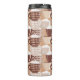 This cute thermal tumbler is perfect for anyone on the go, and features a fun pattern of steaming cappuccino with whipped cream topping and in brown, tan, and white patterned mugs. One side has a brown and tan bordered banner with your monogram in dark brown. Be sure to see the matching tote bag to complete your "on the go" look!