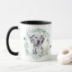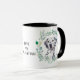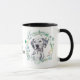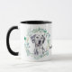 "LOVE MY DALMATIAN" declares this mug for the fan of the Dalmatian Dog. Each side of the mug has a beautiful watercolor portrait of a Dal in a blue green leaf wreath. Between the two images is the text, which may be easily customised, or even removed, by you.