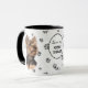 This mug for the Yorkshire Terrier Dog owner features an adorable portrait of a little Yorkie. The image is printed twice, and between them is an oval with the black text that says "Love my Yorkie Terrier". The oval and dog images are placed on a white background sprinkled with paw prints. Your monogram or name can be placed in a text field at the bottom.