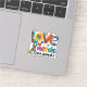 Share compassion and support with this “Love Needs No Words” autism awareness sticker, featuring a vibrant sunflower, heart, and colourful puzzle pieces. Perfect for moms, teachers, advocates, and anyone who celebrates autism acceptance.