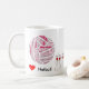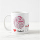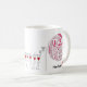 Fun "love netball" word art and netball players stick figures, with red hearts on coffee mug. Also on t-shirt and gifts. Would make a great gift idea for a netball coach, player or fan.