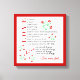 This design features the New Testament Bible Verse 1 Corinthians 13:4-8 in black and red text decorated with five red and green flowers. "Love is patient, love is kind, it doesn't envy, doesn't brag, is not proud, doesn't behave itself inappropriately, doesn't seek its own way, is not provoked, takes no account of evil, doesn't rejoice in unrighteousness, but rejoices with the truth. Love bears all things, believes all things, hopes all thing, endures all things. Love never fails."