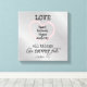 Love never fails bible verse canvas prints with silver background, light pink heart accent, black typography. Love bears, believes, hopes, endures all things; Love never fails scripture from I Corinthians 13; 7, 8. See more at Christian Quotes; Link below:
