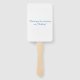 A "Love Never Fails" sunflower themed hand fan for your wedding , this item is displayed on high quality material that you can personalise. Presented on a white background the hand fan displays "Love Never Fails" written beautifully in blue cursive ink. Under the heading is a lovely bouquet of sunflowers inside of a blue and white polka dot rain boot. Underneath the graphic is the couple's name, venue, and wedding date presented in charming blue font. The back also has a white background with a custom thank you message for your guests written in cursive font. Customise these hand fans today!