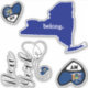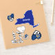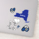 A sheet of 3 different sticker designs, featuring New York map and state flag.