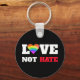 Love Not Hate Bold Heart Rainbow on Black Graphic Key Ring