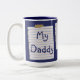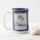 Cute custom mug with "My Daddy is #1 xoxo" on three lined paper notes that look like they're taped to the mug. Great, loving gift for Father's Day, birthdays, or anytime you want to say you love him. Easily personalise with your own name. Lots of styles of cups are available.