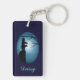 Love Of Music, beautiful digital illustration of a Victorian lady playing the violin.In silhouette, she is stood playing next to a tree. with a backdrop of the night sky and the glow of the moon. Little fireflies are flittering about and there is a slightly eerie feel to the scene. An ideal gift idea for music lovers and musicians who have a love for music. Personalise by adding your or their name to make this beautiful keyring extra special.