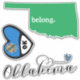 A sheet of 3 different sticker designs, featuring Oklahoma map and state flag.