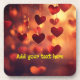 Elevate your table setting with this set of six coasters featuring a romantic design of softly glowing hanging hearts. Perfect for Valentine’s Day, weddings, or cosy gatherings, these coasters add charm and warmth to your home. Make them truly unique by customising the set of coasters with your own special message, creating a thoughtful keepsake or personalised gift for loved ones. Durable and stylish, this set combines functionality with heartfelt elegance, ensuring your surfaces are protected in the most beautiful way.