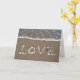 "LOVE" is printed in scalloped shells on the sand of a Florida beach. Express your love for the beach, shells sand, or a person! Great for all things bridal, romantic and sentimental. Works for invitations, announcements, thank-yous or just becauses. Look for matching stamps, too!