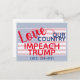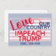 Love Our Country Impeach Trump Congress design. Design description: The background is a US flag design. Over that is a heart, with a semi-transparent white layer over the entire design. Over that is the word "Love" written in red script and the words "our country" in blue san serif text. Below that, the words "Impeach Trump" and the number for the congressional switchboard. Customisable.