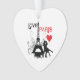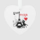 Love Paris with Eiffel Tower and kissing couple with heart balon
