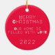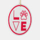 LOVE spelled with a paw print in cool modern type. Bright Red on a white background. The back is red with three lines of of white text that you can personalise. Sample text is Merry Christmas, Our home is filled with love. But you can change the message, add your dog's name or remove the text entirely. A great holiday gift for new pet parents!