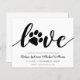 LOVE! Invite friends and family to your wedding with this super cute 'LOVE' with a paw print wedding save the date cards. These budget wedding invitations do not include envelopes. See our collection for matching A6 envelopes, or our postcards option. Customise with your names, date, and wedding location. This paw print wedding save the date announcement will be a hit with your family and friends. Perfect for all dog lovers, cat lovers, and animal lovers. COPYRIGHT © 2020 Judy Burrows, Black Dog Art - All Rights Reserved. Love Paw Print Wedding Save The Date Invitation