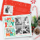 Love Peace Joy Kisses Our First Christmas As Mr & Mrs, Colourful And Bold Typography, Newlywed Couple's 1st Christmas, 4 PhotoCollage Holiday Wedding Announcement Card.