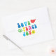 Fly stright to the 1970s with this retro colourful love, peace and joy round sticker! Enjoy!