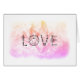 * Healing Energy Enhanced Crystal Watercolor Gradient Blush Pink and Lavender Blank Greeting Card designed for sending peace, love & light to friends or family. The word LOVE is prominently placed on top of the crystal watercolor. *