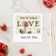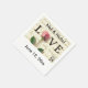 Love Pink Rose Scroll Stamp Paper Napkin. Personalise with the bride and groom's names and wedding date.