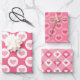 Love pink Valentines hearts patterns mix wrapping paper. Pink girly gift wrap.