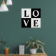 Poster shown in black/white colour block with letters of love. Customise this item or buy as is.