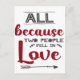This lovely postcard is perfect for Valentine's Day, birthdays, or anniversaries, and it features the caption "All because two people fell in love" in red and dark grey modern fonts on a white background, decorated with cute tiny hearts and a grey arrow.