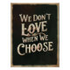 Bring a touch of heartfelt emotion to your space with this elegant wall art featuring the quote 'We don't love when we choose.' Perfect for lovers of meaningful decor, this minimalist design is ideal for bedrooms, living rooms, or gifting to someone special. Its timeless message resonates with anyone who values the power of love and spontaneity in life.