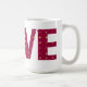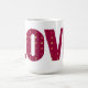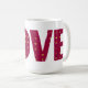 Start your Valentine's day with a custom coffee mug adorned with the word LOVE filled with a deep red and gold hearts.