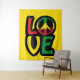 Love reggae music design with peace symbol and typography reggae flag colours, wall tapestry.